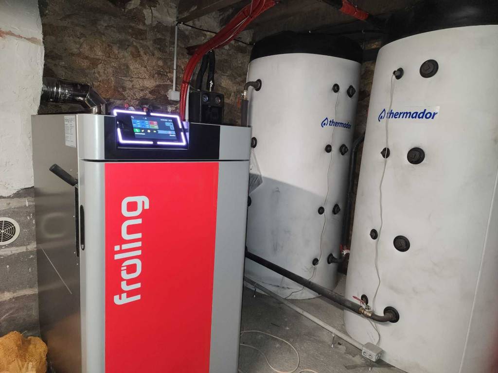 - Fourni et mis en place une chaudière à bois bûche Froling S1 turbo 20kW avec régulation classe VI,