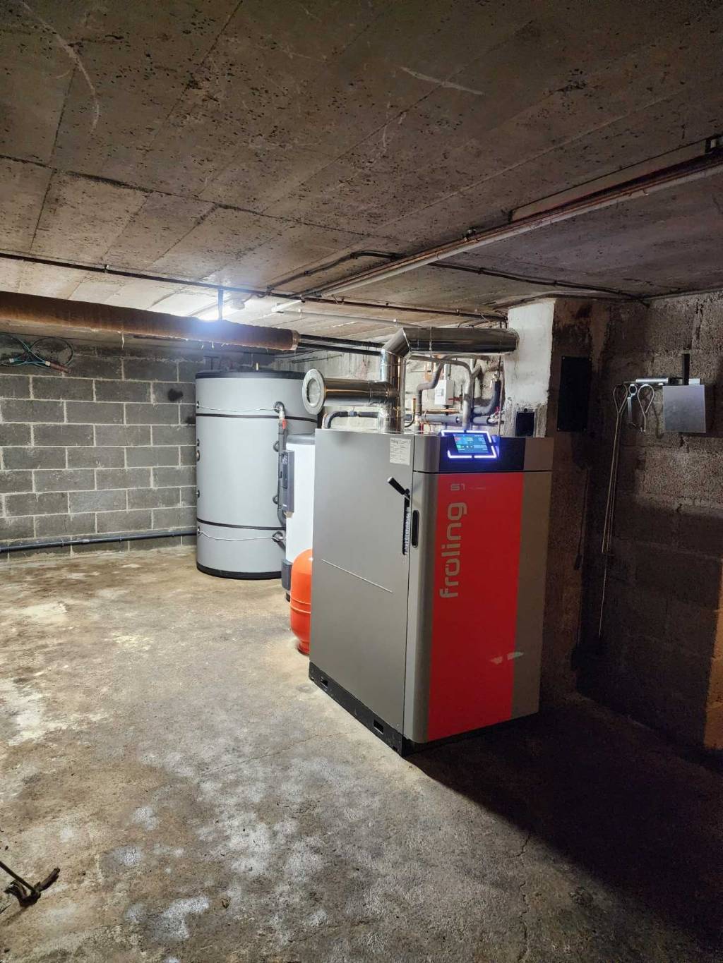 Grâce à la chaudière à bois bûche Froling S1 Turbo 15 kW, les clients bénéficient désormais d’un confort thermique optimal, d’un haut rendement énergétique et d’un chauffage écologique adapté à leur logement. L’installation du silo de stockage permet une autonomie accrue et une alimentation continue en granulés, limitant les interventions manuelles.