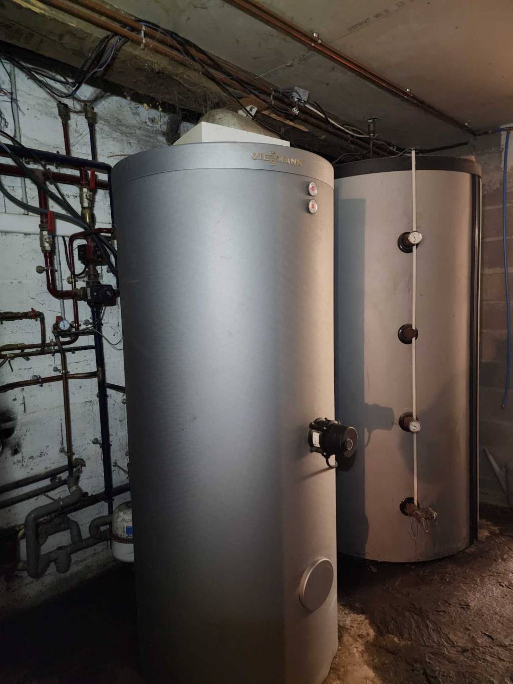 - Réalisé le raccordement hydraulique au réseau existant ainsi qu'au ballon tampon et ballon d'eau chaude sanitaire solaire déjà présents.