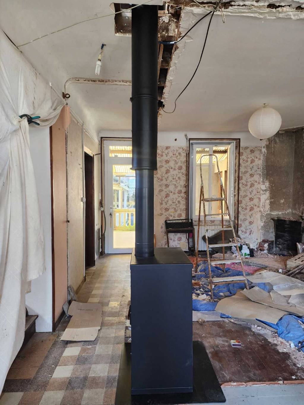 Sur la commune de Saint-Moreil, en Creuse (23), notre client souhaitait obtenir un système de chauffage d'appoint plus économique. Nous avons installé un nouveau poêle à bois comprenant :
